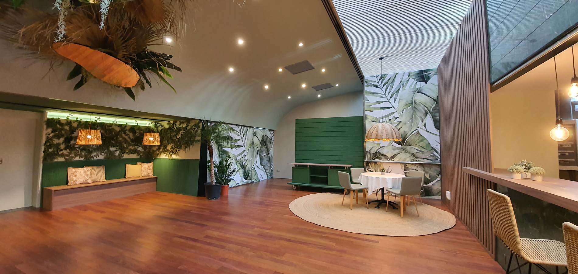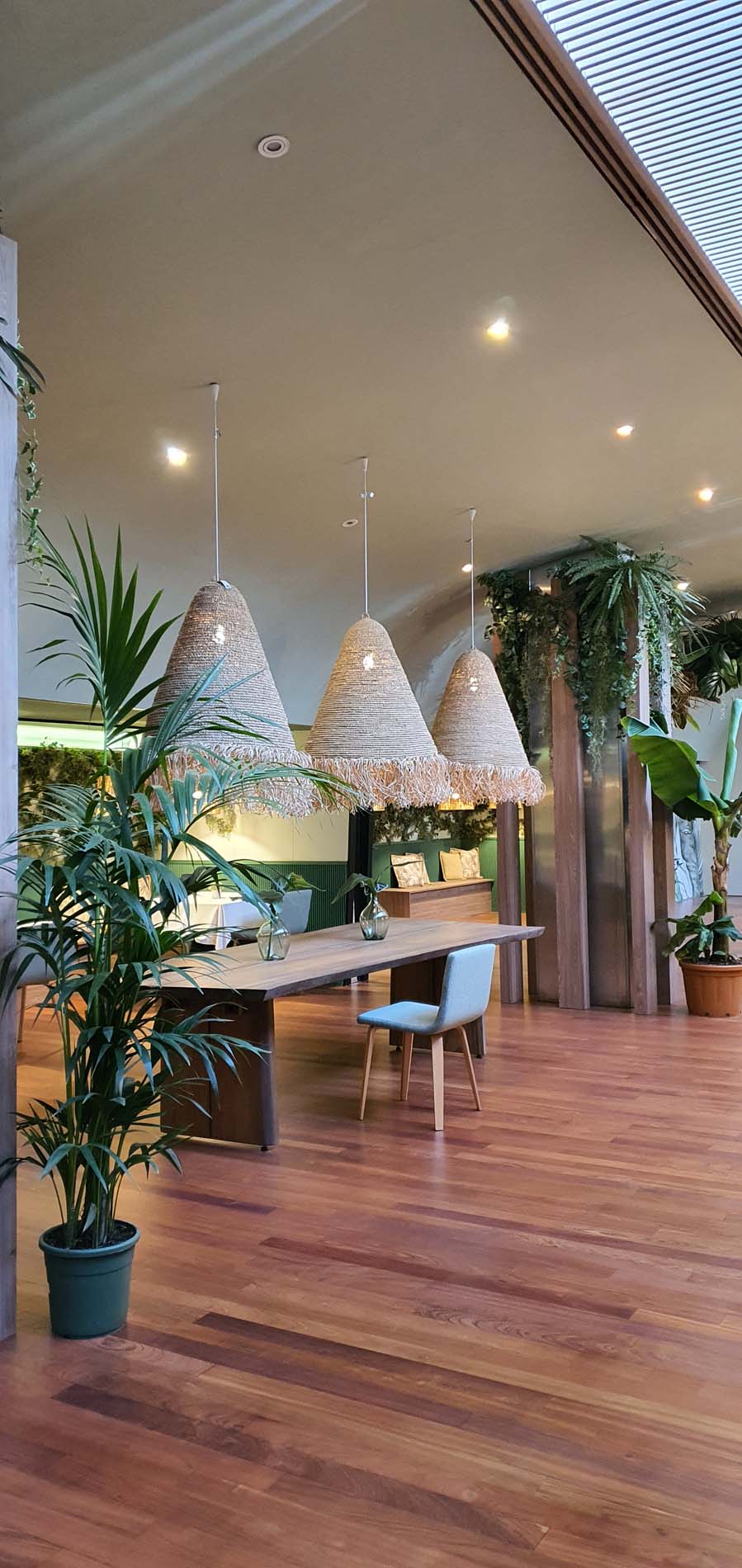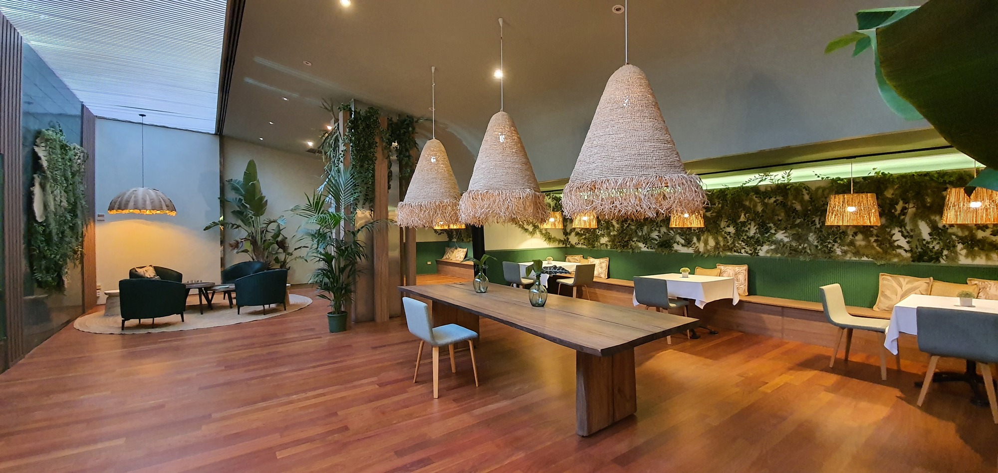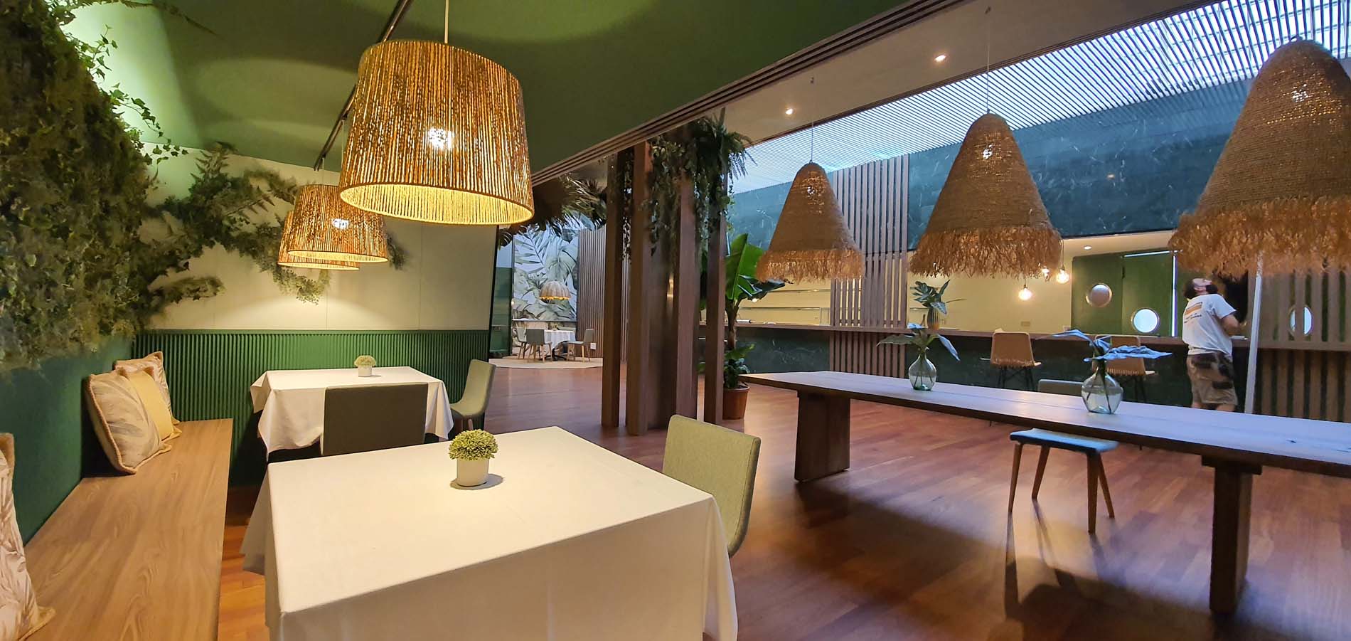 Based on a tropical decoration that invites to a more pleasant stay. Wood and vegetation are the main decorative motifs.