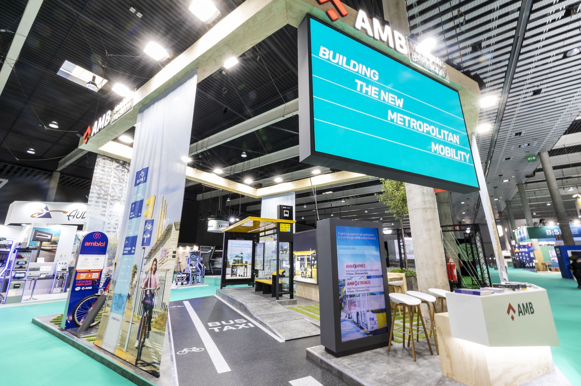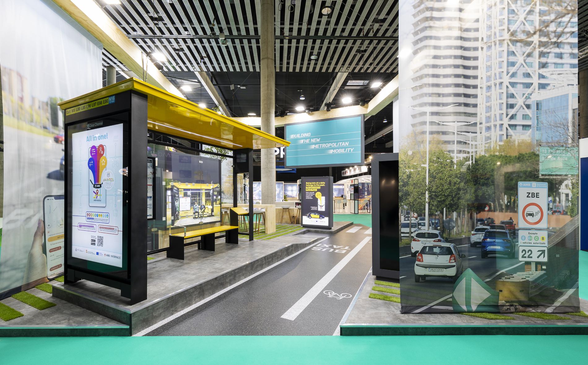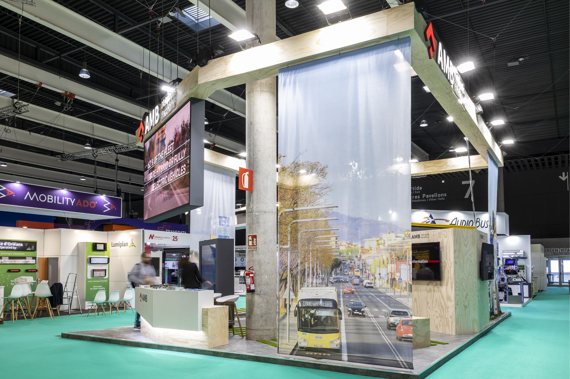 El diseño recrea un entorno urbano con calles, aceras y vegetación, brindando una experiencia inmersiva. Se han utilizado materiales sostenibles y tecnologías interactivas para resaltar las soluciones innovadoras de AMB en el transporte público.